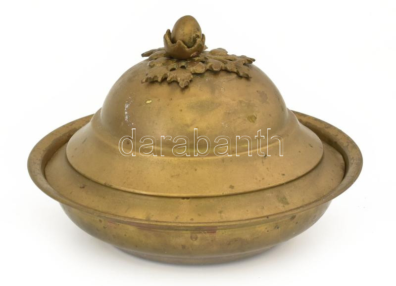 Leírás: Makkos kínáló. Réz, kis horpadással d: 18 cm