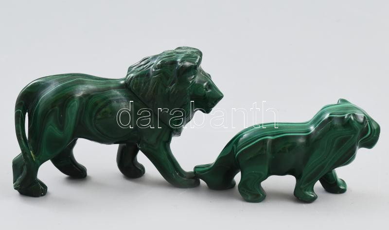 Leírás: Malachit oroszlán pár, minimális kopottsággal, h: 10-11 cm