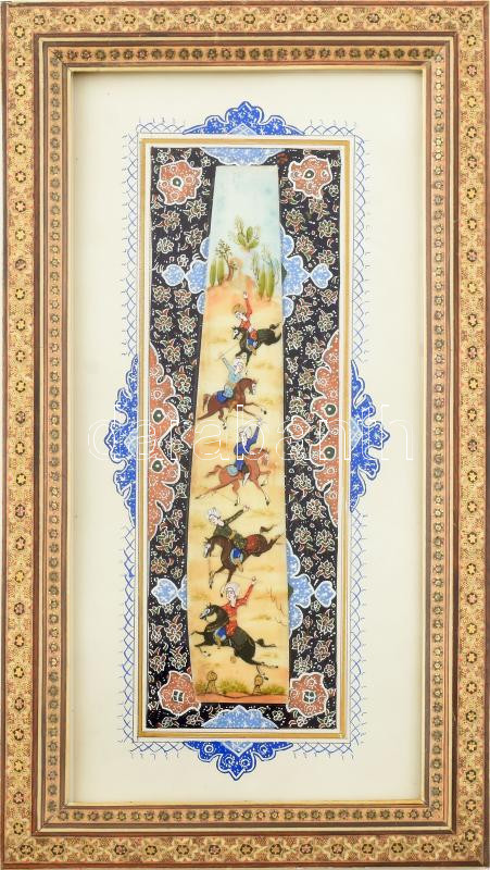 Leírás: Marokkói festett csontkép, kézzel festett marokkói mintás képbe foglalva, csontberakásos üvegezett keretben, jó állapotban, 34,5c19,5 cm