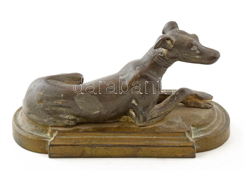 Leírás: Munkácsy Vasgyár? Pihenő kutya levélnehezék, korának megfelelő állapotban, 17x8x9 cm