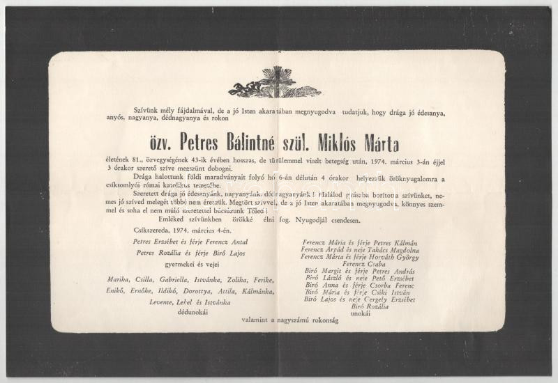 Leírás: 1938-74 4 db gyászjelentés báró, stb