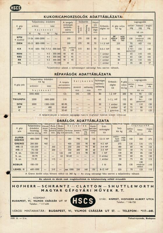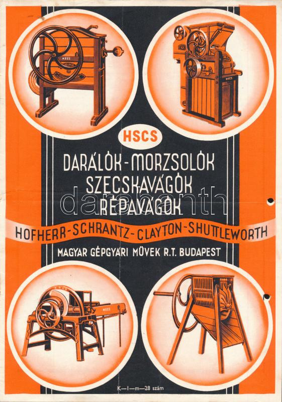 1939 HSCS (Hofherr-Schrantz-Clayton-Shuttleworth) Darálók-morzsolók, s... https://www.darabanth.com/hu/451-Gyorsarveres/451.0/Mutargy-papirregiseg-egyeb/Nyomtatvanyok~1000005/1939-HSCS-Hofherr-Schrantz-Clayton-Shuttleworth-Daralok-morzsolok-szecskavagok-stb-illuszt~II2942396