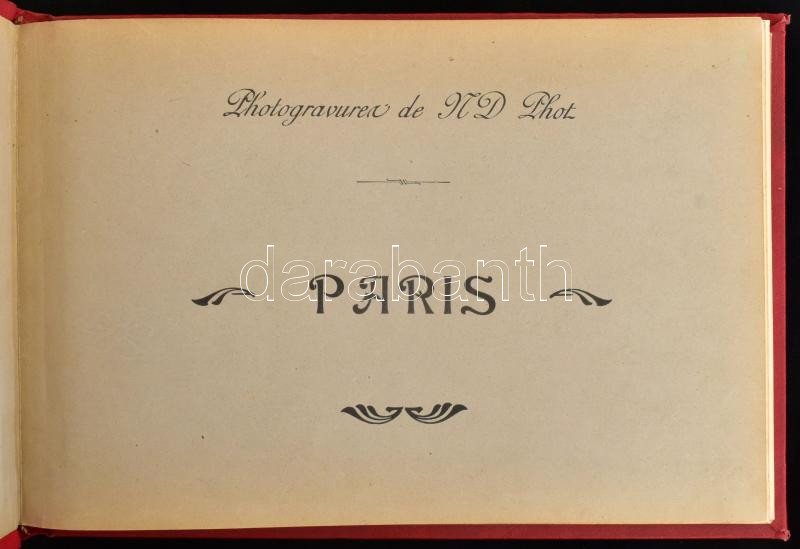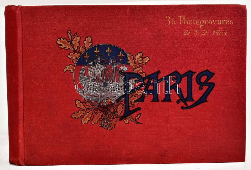 cca 1900-1910 Paris, 36 Photogravures de N. D. Phot. / Párizs, album 36 db fekete-fehér képpel (fotogravűrök), dekoratív egészvászon-kötésben, jó állapotban, a borítón némi kopással, helyenként minimálisan foltos lapokkal, 28x19 cm