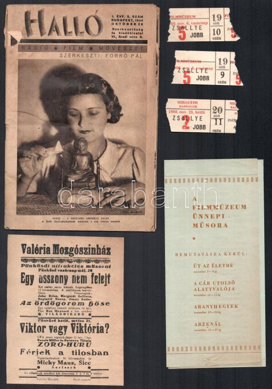 cca 1933-1960 Vegyes mozi tétel, 7 db, 3 db jegy, 3 db prospektus, Hal... https://www.darabanth.com/hu/451-Gyorsarveres/451.0/Mutargy-papirregiseg-egyeb/Nyomtatvanyok~1000005/cca-1933-1960-Vegyes-mozi-tetel-7-db-3-db-jegy-3-db-prospektus-Hallo-I-evf-5-sz~II2973796
