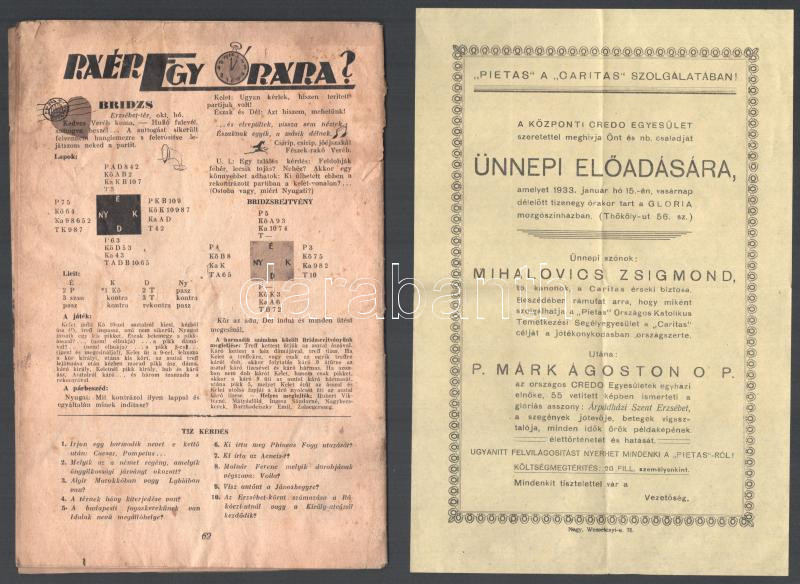 Leírás: cca 1933-1960 Vegyes mozi tétel, 7 db, 3 db jegy, 3 db prospektus, Halló I. évf. 5. sz.