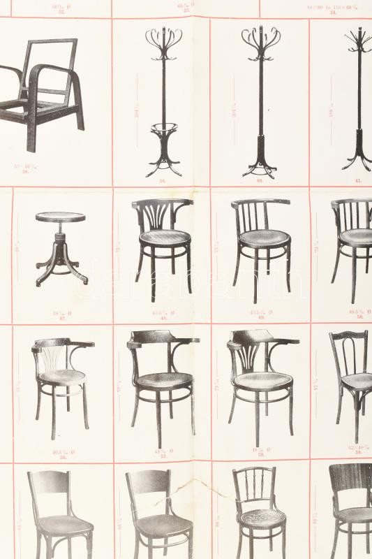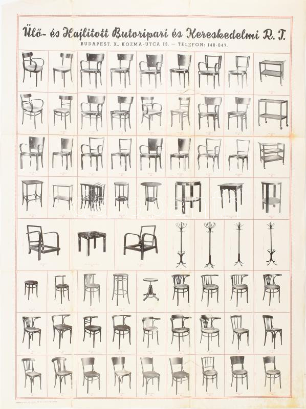 Leírás: cca 1937 Ülő- és Hajlított Bútoripari és Kereskedelmi Rt. Bp. X. bútortáblázat, szakadással, 78×61 cm