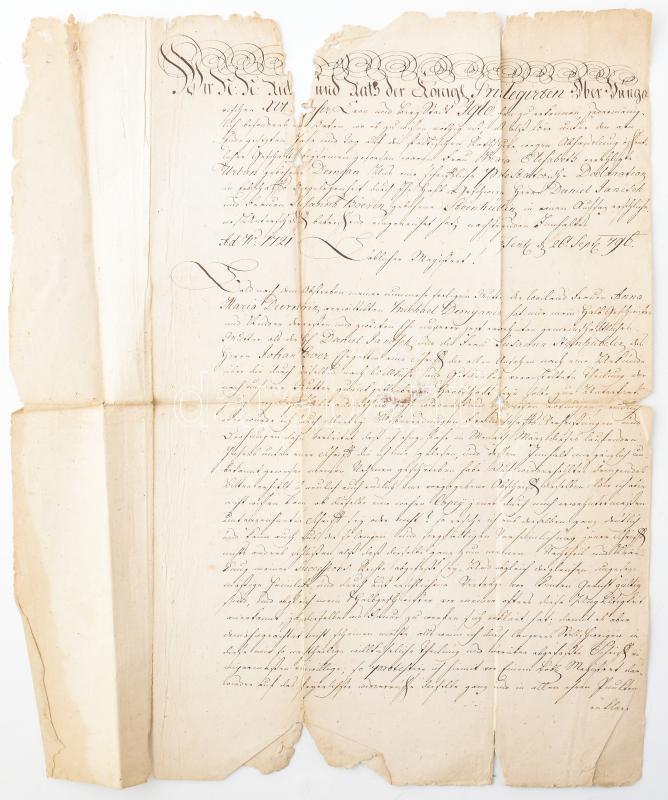 Leírás: 1796 Igló város által kiadott hivatalos okirat német nyelven, sérült / Warrant issued by Iglau SK in German