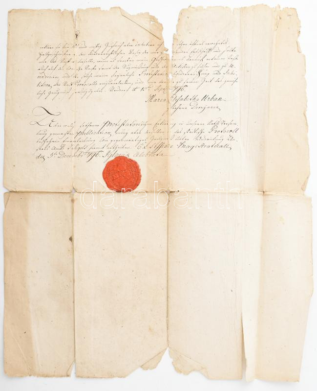 1796 Igló város által kiadott hivatalos okirat német nyelven, sérült /... https://www.darabanth.com/hu/451-Gyorsarveres/451.0/Mutargy-papirregiseg-egyeb/Okmanyok~500022/1796-Iglo-varos-altal-kiadott-hivatalos-okirat-nemet-nyelven-serult-Warrant-issued-by-Iglau~II3004504