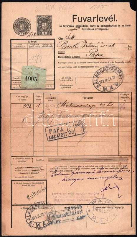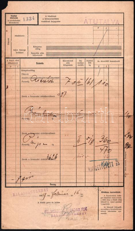 1929 - Felsenburg Tivadar Fiai, Balassagyarmat vasúti fuvarlevél - 40 ... https://www.darabanth.com/hu/451-Gyorsarveres/451.0/Mutargy-papirregiseg-egyeb/Okmanyok~500022/1929-Felsenburg-Tivadar-Fiai-Balassagyarmat-vasuti-fuvarlevel-40-l-malnaszorprol~II2988956