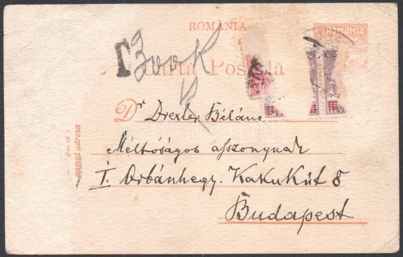 Leírás: 1948 Bp., Drexler Béla Dezső Vilmos, Drexler Béla miniszteri titkár fiának születési anyakönyvi kivonata 6+3Ft illetékbélyeggel, kisebb szakadásokkal + Drexler Bélánénak címzett, angol nyelven megírt levelezőlap, Marosvásárhelyről Budapestre küldve
