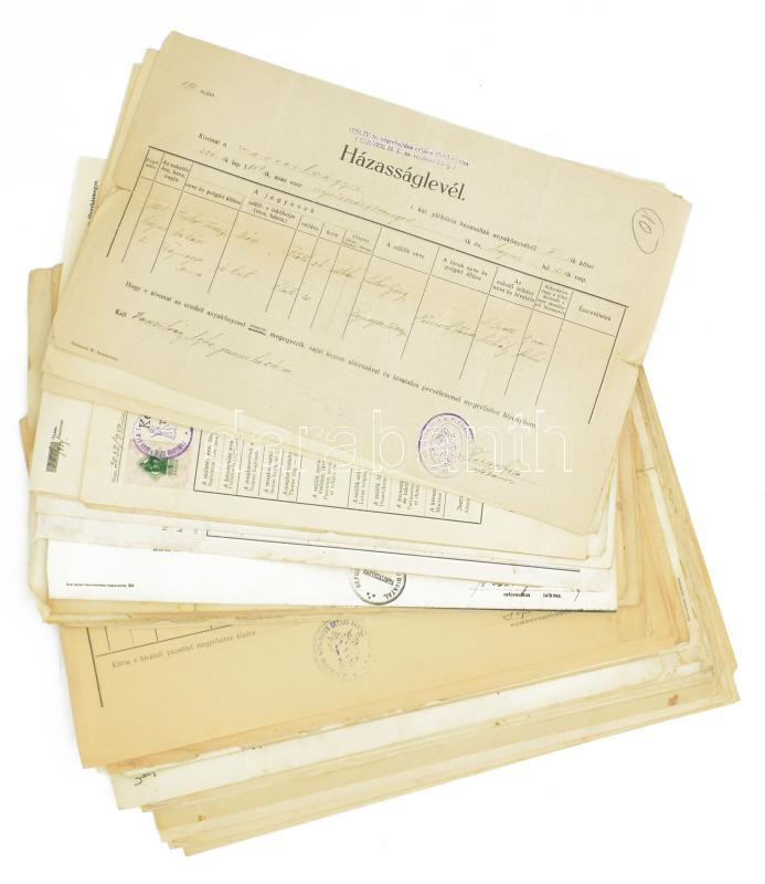 Leírás: 55 db vegyes születési, házassági, halálozási anyakönyvi kivonat