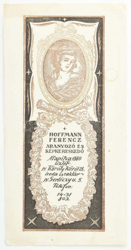 Leírás: Hoffmann Ferencz aranyozó és képkereskedő számolócédulája