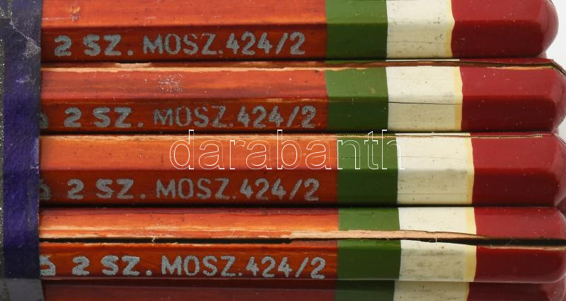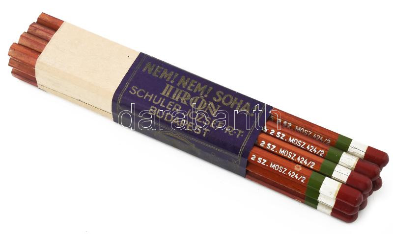 Nem! Nem! Soha! Iron, Schuler József RT Budapest irredenta nemzeti színű ceruza készlet, eredeti bontatlan csomagolásban, 12 db, a ceruzák egy részén repedésekkel, h: 17,5 cm