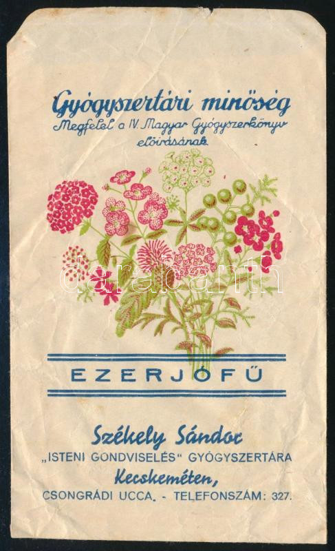Székely Sándor "Isteni Gondviselés" Gyógyszertára ezerjófű r... https://www.darabanth.com/hu/451-Gyorsarveres/451.0/Mutargy-papirregiseg-egyeb/Reklam~500026/Szekely-Sandor-Isteni-Gondviseles-Gyogyszertara-ezerjofu-receptboritek~II2960948