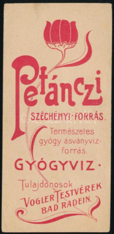 cca 1910-1920 Petánczi Széchényi-forrás gyógyvíz, szecessziós számolóc... https://www.darabanth.com/hu/451-Gyorsarveres/451.0/Mutargy-papirregiseg-egyeb/Reklam~500026/cca-1910-1920-Petanczi-Szechenyi-forras-gyogyviz-szecesszios-szamolocedula~II2997243