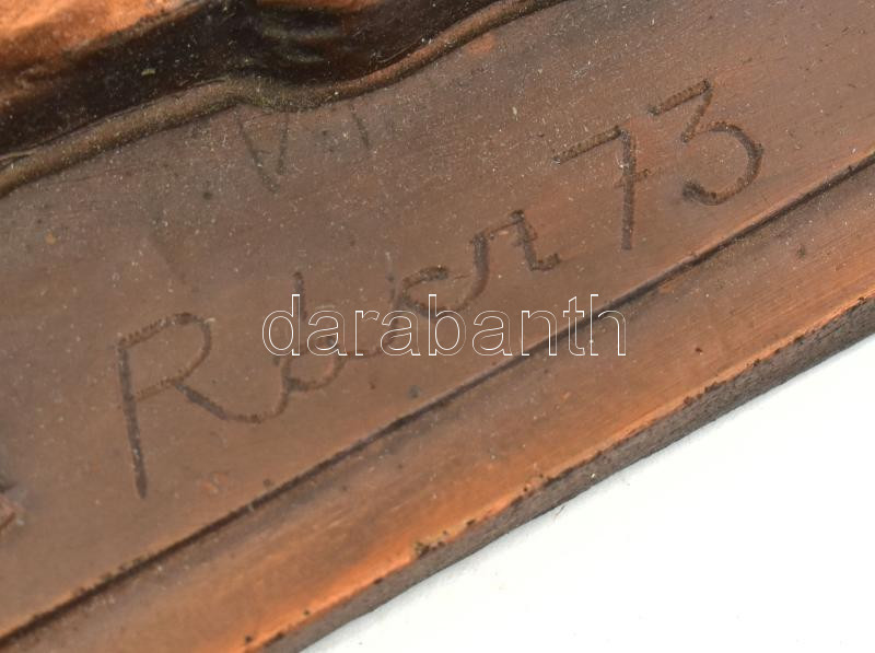 Leírás: Rácz Edit (1936- ): Lány és fiú Ősz. Bronz, fára applikálva. Jelzett, 11x11 cm