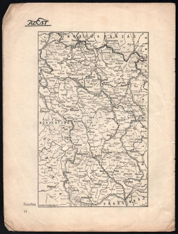 Leírás: cca 1916 Az Est c. lap I. világháborús térképmelléklete 18p. Sarkán gyűrődésekkel 31x23 cm