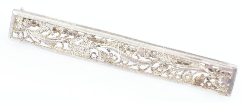 Leírás: Ezüst(Ag) filigrán bross, jelzett, 4,8×0,8 cm, nettó: 2,7 g