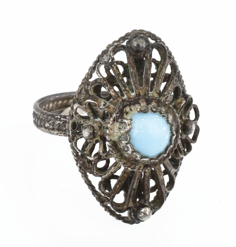 Leírás: Ezüst(Ag) filigrán gyűrű, türkizzel, jelzés nélkül, méret: 49, bruttó: 4,1 g