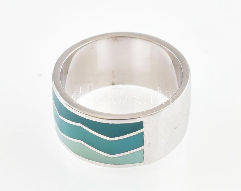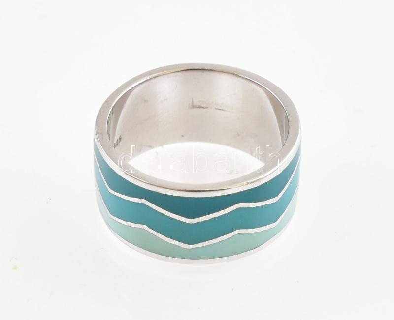 Leírás: Ezüst(Ag) gyűrű hullámos, zománcozott díszítéssel, jelzett, méret: 58, bruttó: 7,6 g