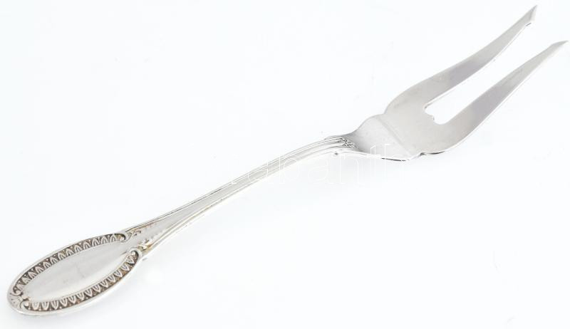 Leírás: Ezüst(Ag) sajtvilla, jelzett, h: 10,7 cm, nettó: 8,9 g