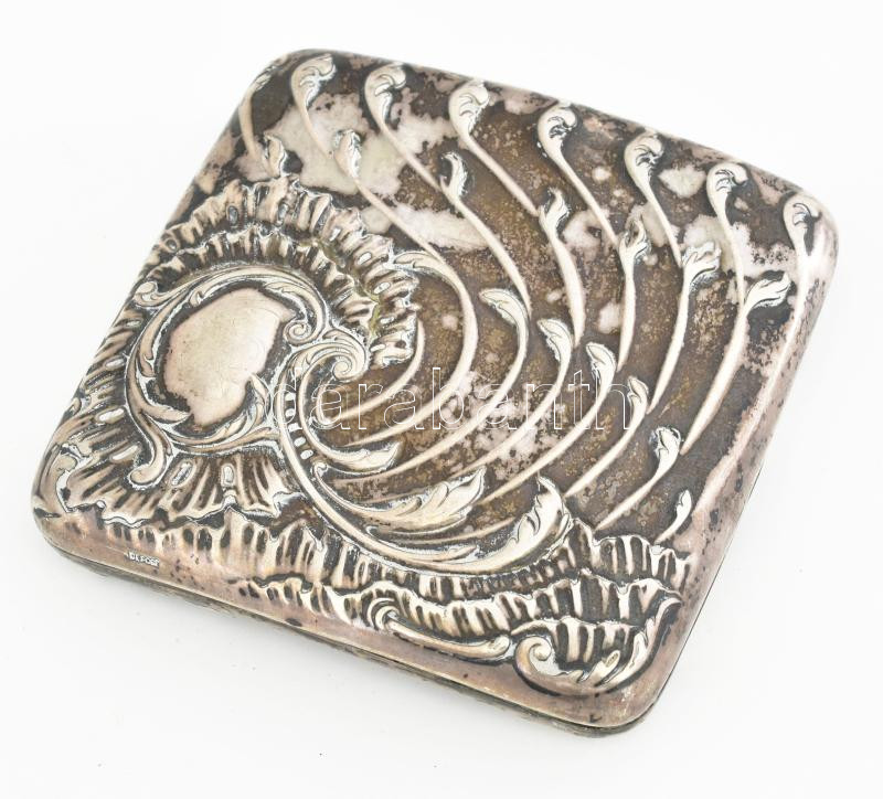 Leírás: Szecessziós ezüst (Ag) cigarettatárca, jelzéssel, kis hiánnyal, nettó: 97 g