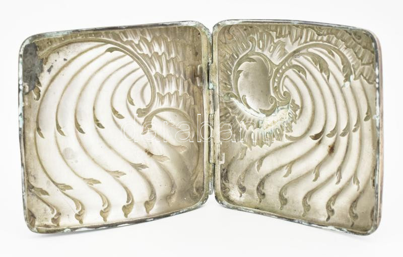 Szecessziós ezüst (Ag) cigarettatárca, jelzéssel, kis hiánnyal, nettó:... https://www.darabanth.com/hu/451-Gyorsarveres/451.0/Nemesfem-disztargyak-ekszerek-dragakovek/Nemesfem-disztargyak-ekszerek-dragakovek~1000030/Szecesszios-ezust-Ag-cigarettatarca-jelzessel-kis-hiannyal-netto-97-g~II2996540