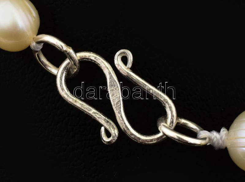 Leírás: Tenyésztett gyöngy nyaklánc, ezüst (Ag) kapoccsal, jelzéssel, h: 54 cm