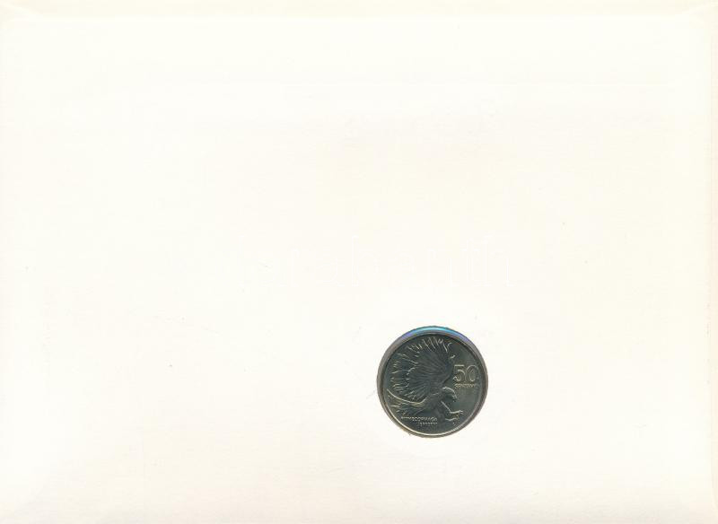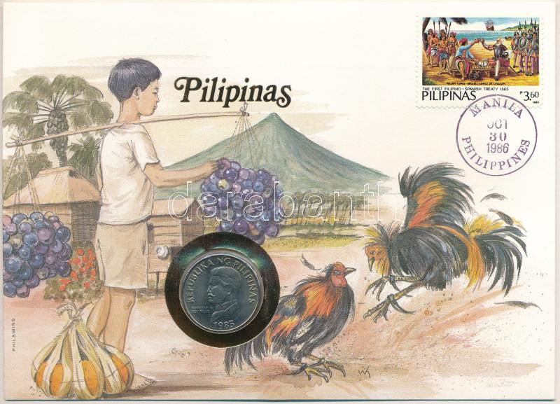 Fülöp-szigetek 1985. 50s Cu-Ni felbélyegzett borítékban, bélyegzéssel, német nyelvű leírással T:AU Philippines 1985. 50 Sentimo Cu-Ni in envelope with stamp, cancellation and a prospectus in german C:AU