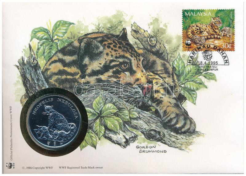 Malajzia DN (1991) "A Világ Vadvédelmi Alap (WWF) 30. évfordulója - Neofelis Nebulosa (Ködfoltos párduc)" kétoldalas fém emlékérem érmés borítékban, bélyeggel és bélyegzéssel, német nyelvű ismertetővel T:UNC,AU