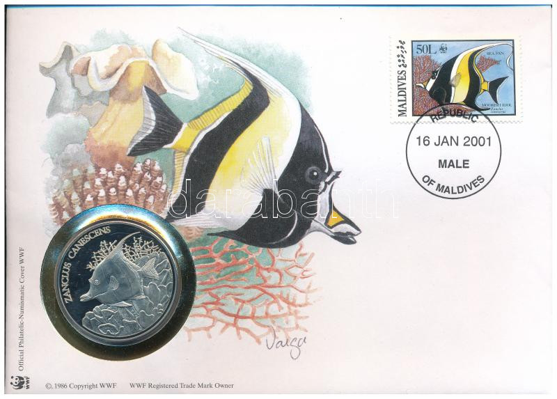 Maldív-szigetek DN (1991) "A Világ Vadvédelmi Alap (WWF) 30. évfordulója - Zanclus Canescens" kétoldalas fém emlékérem érmés borítékban, bélyeggel és bélyegzéssel T:UNC,AU