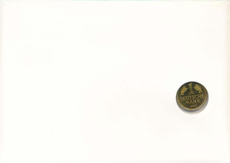 NSZK 1989J 1M aranyozott Cu-Ni "Gustav Heinemann" érmés borítékban bélyeggel, bélyegzéssel, német nyelvű leírással T:UNC kis patina