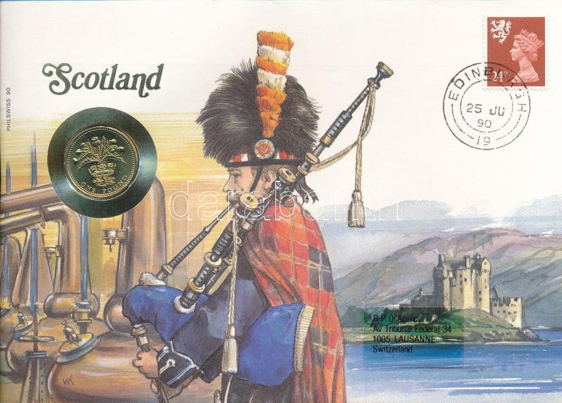 Great Britain 1989. 1 Pound in "Scotland" envelope with stamp and cancellation, with German description C:UNC