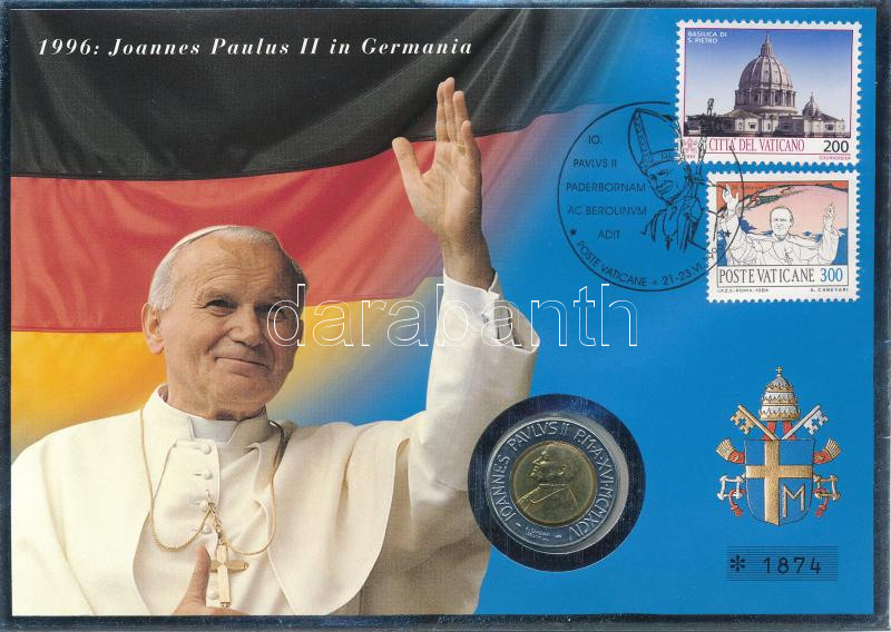 Vatikán 1994. 500L sorszámozott "II. János Pál" felbélyegzett borítékban, német nyelvű bélyegzéssel és leírással T:UNC