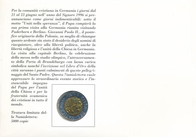 Vatican 1994. 500L "John Paul II" in serial numbered envelope with stamp and cancellation C:UNC