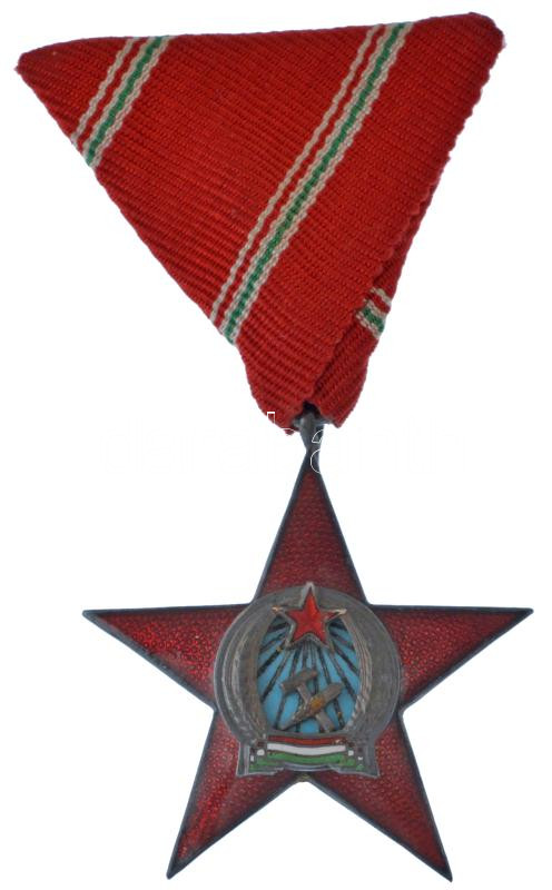 1949. "A Magyar Népköztársasági Érdemérem ezüst fokozata" ezüstözött, zománcozott bronz kitüntetés szalagsávval, eredeti sérült Rákosi címeres tokban T:AU