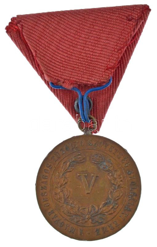 Leírás: ~1900. "A Magyar Országos Tűzoltó-Szövetség V éves Szolgálati Érme" bronz kitüntetés modern mellszalaggal T:XF,VF ph, ü.