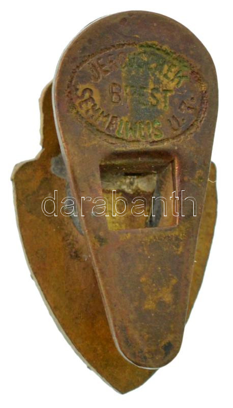 Leírás: ~1930-1940. Koronás magyar címert ábrázoló zománcozott gomblyukjelvény, hátoldalon "JEROUSCHEK" gyártói jelzéssel (25x15mm) T:AU