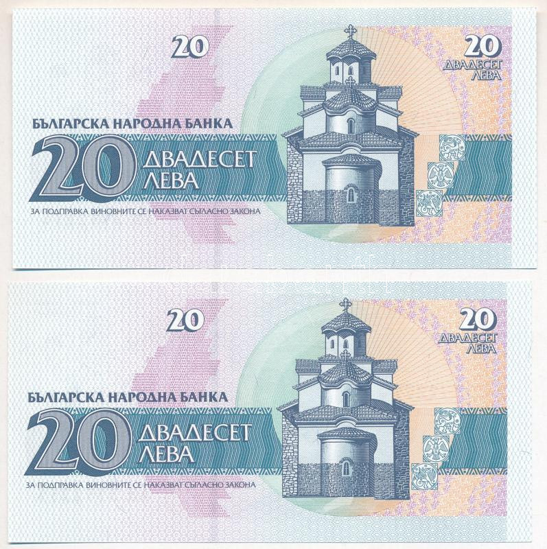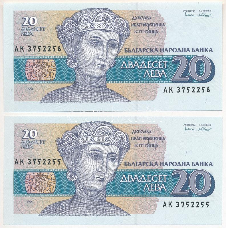 Bulgaria 1991. 20 Leva ... https://www.darabanth.com/hu/451-Gyorsarveres/451.0/Numizmatika/Kulfoldi-bankjegyek~1500014/Bulgaria-1991-20L-2x-sorszamkovetok-TUNC--Bulgaria-1991-20-Leva-2x-consecutive-serials-C~II2921742
