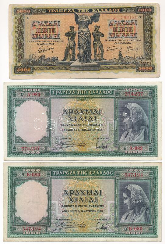 Leírás: Görögország 1939. 1000Dr (2x) + 1942. 5000Dr T:F