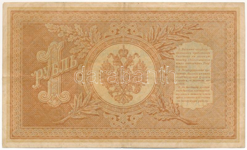 Russian Empi... https://www.darabanth.com/hu/451-Gyorsarveres/451.0/Numizmatika/Kulfoldi-bankjegyek~1500014/Orosz-Birodalom-1912-1917-1898-1R-Szign-Shipov-TF--Russian-Empire-1912-1917-1898-1-Ruble-S~II2958189