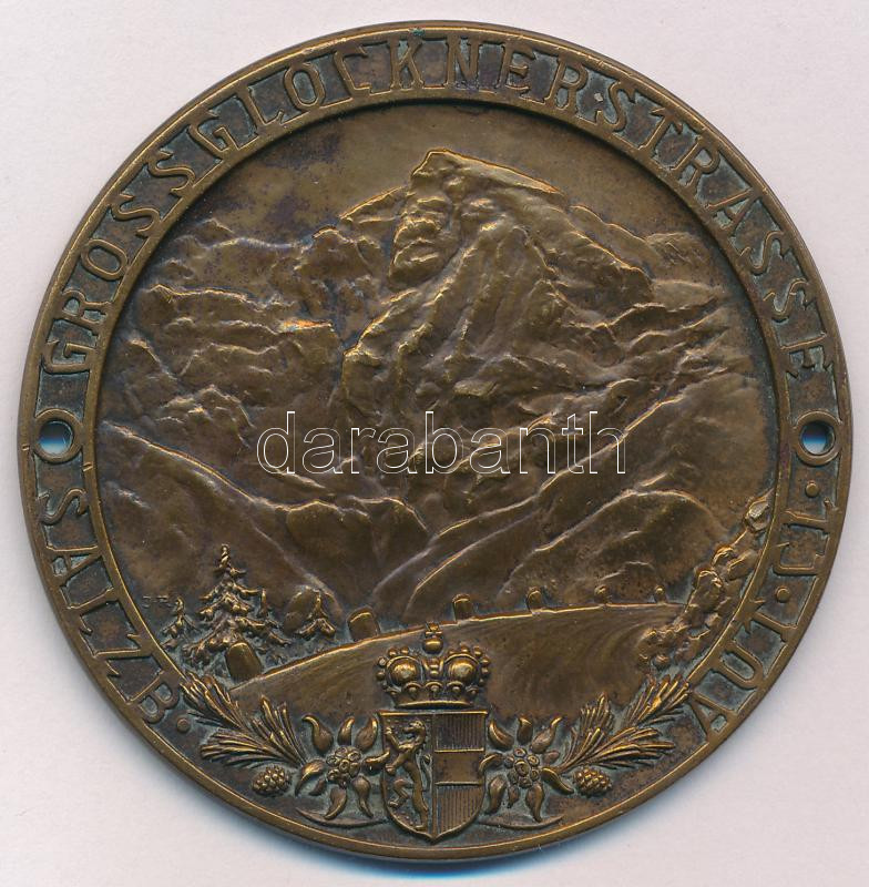 Leírás: Ausztria DN "Grossglocknerstrasse - Salzburger Automobil Club" egyoldalas bronz emlékérem, hátoldalon "Paul Koppenwallner Salzburg" gyártói jelzéssel (60mm) T:XF patina