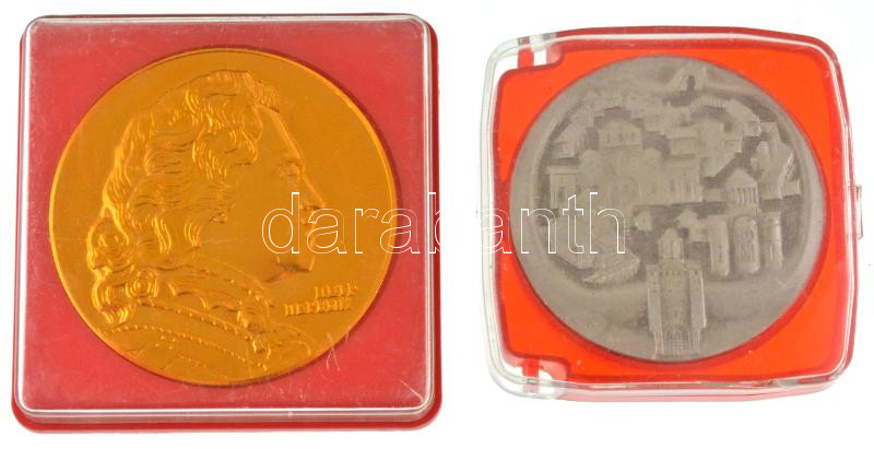 Ukrajna 1982. "Kijev 1500 éves" Al emlékérem tokban + Oroszország 1974. "Peterhof" aranyozott Al emlékérem (64mm) T:AU