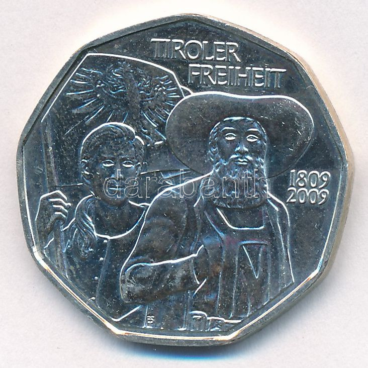 Austria 2009. 5 Euro Ag "200th Anniversary of the Revolt of the Tyrolean Freedom" C:AU