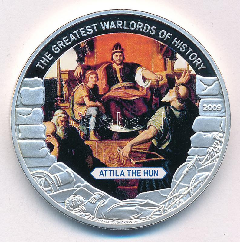 Liberia 2009. 5 Dollars Cu "The Greatest Warlords of History - Attila the Hun" with multicolor picture, in capsule C:PP