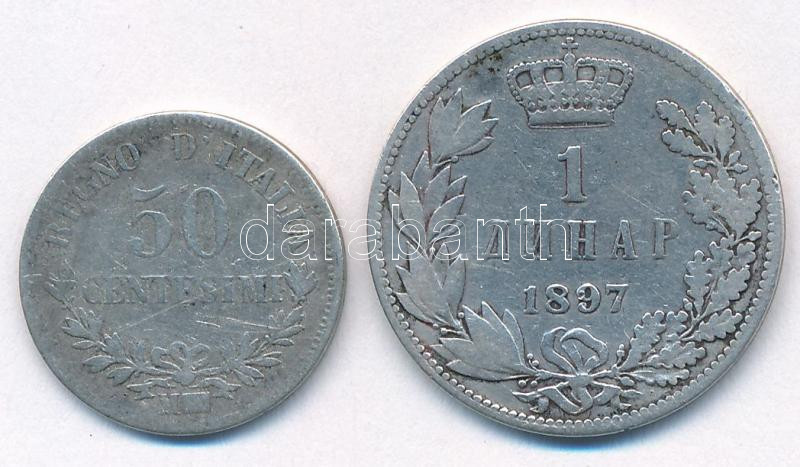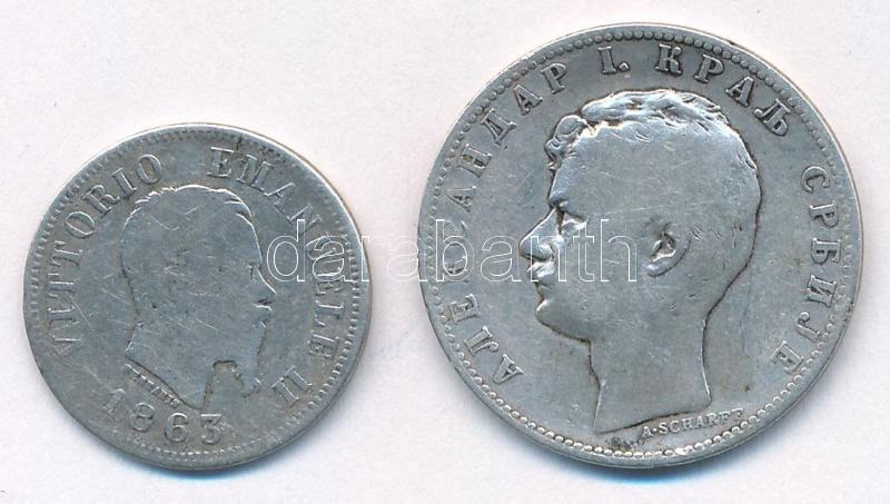 Olaszország 1863M BN 50c Ag "II. Viktor Emánuel" + Szerbia 1897. 1D Ag "I. Sándor" T:F