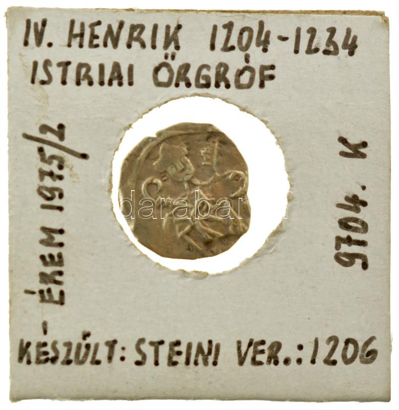 Osztrák Államok / Isztriai Őrgrófság ~1200-1220. Denar Ag "II. Henrik" (~0,40g) T:XF Austrian Sates / Margraviate of Istria ~1200-1220. Denar Ag "Henry II" (~0,40g) C:XF