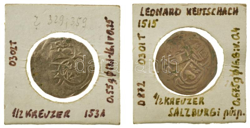 Osztrák Államok / Salzburg 1515. 1/2kr Ag "Leonhard von Keutschach" (0,70g) + 1531. 1/2kr Ag "Mátyás" (0,55g) T:XF,VF Austrian Sates / Salzburg 1515. 1/2 Kreuzer Ag "Leonhard von Keutschach" (0,70g) + 1531. 1/2 Kreuzer Ag "Matthäus Lang" (0,55g) C:XF,VF