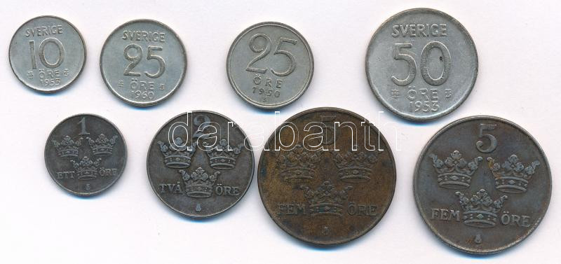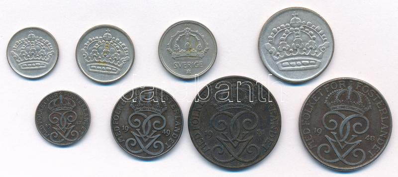 Leírás: Svédország 1931-1960. 1ö-50ö (8xklf), közte 4db Ag érme T:2-,3