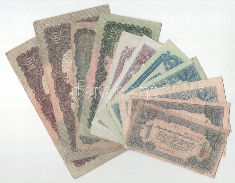 Leírás: 1944. 1P (3x) az egyik sorszámos + 2P (2x) + 5P (2x) + 10P + 20P + 100P (2x) "A Vöröshadsereg Parancsnoksága" T:F,VG